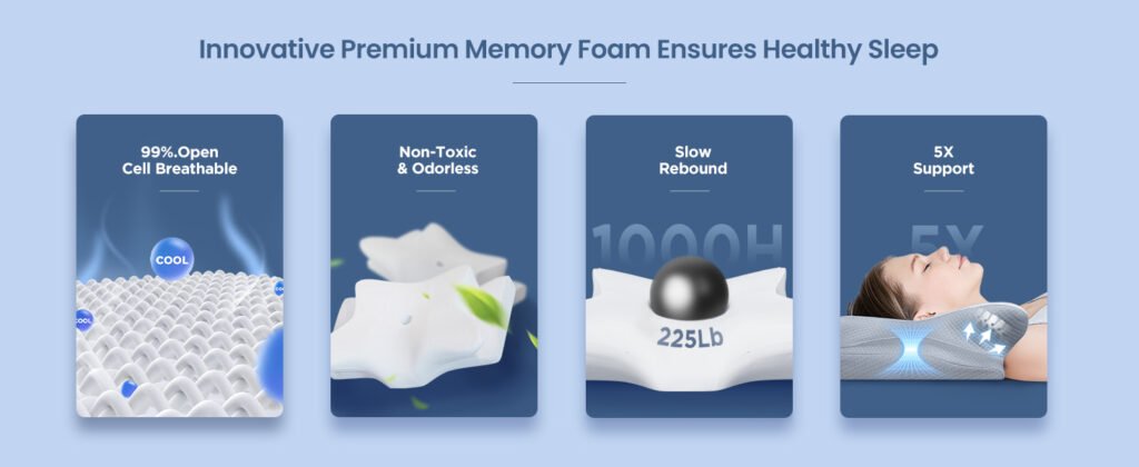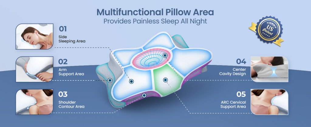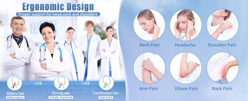 Cervical Curve Support: Incorrect pillows may cause the cervical curve to overstretch, leading to neck pain. The cervical neck pillow is specifically designed to support the natural curve of the cervical spine, reducing the risk of overstretching and associated pain.